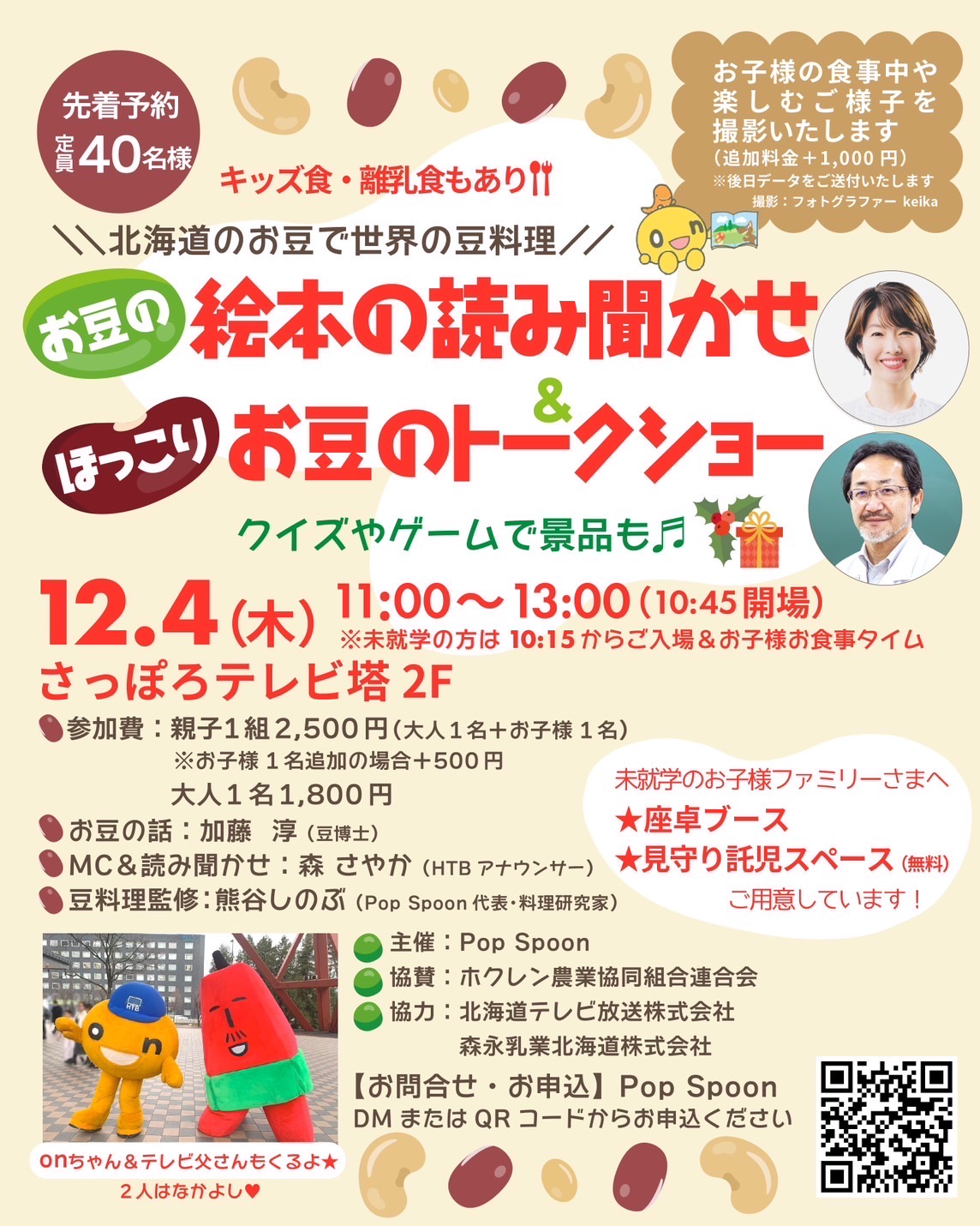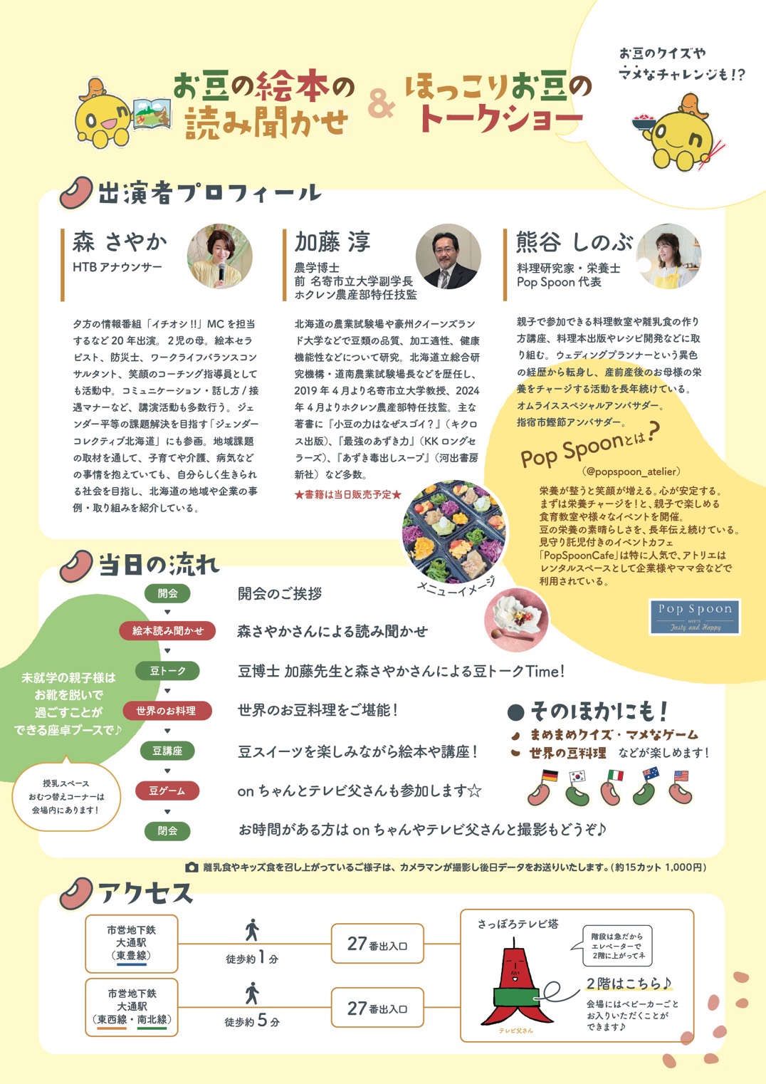 豆料理を味わって沢山のお土産をお持ち帰りくださいね♪ ※見守り託児コーナーあります◎