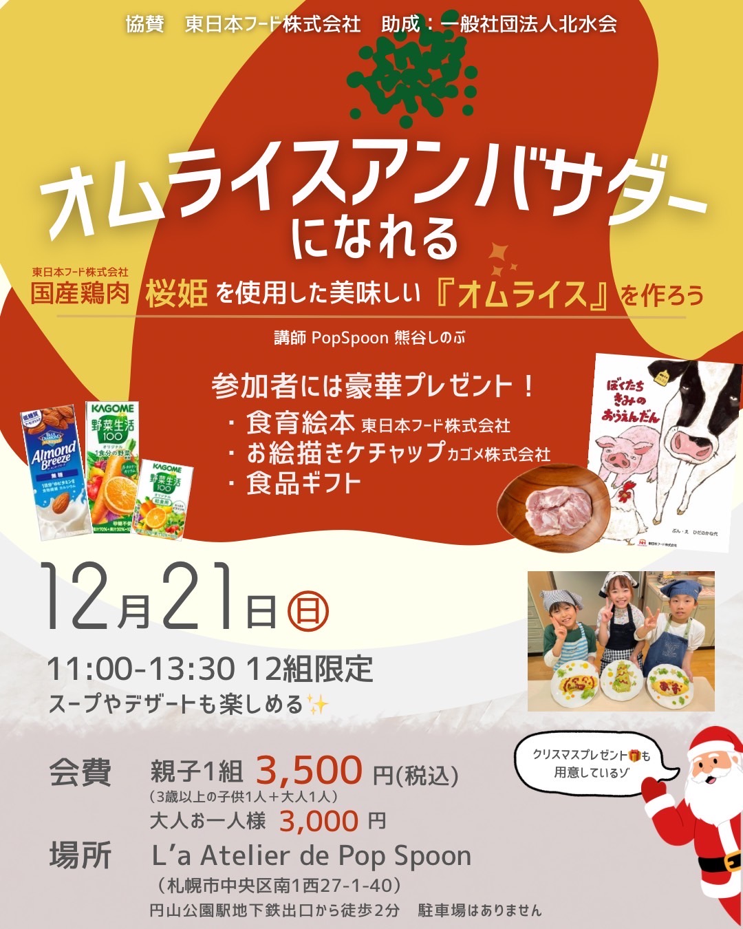 (オムライス講座・料理体験・オムライス・副菜・デザート・ドリンク・レシピ・お土産・絵本)
